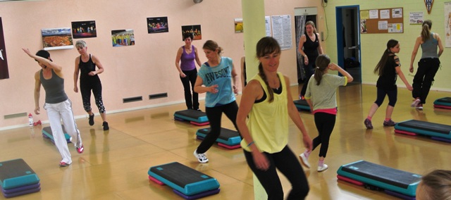 Übungsprogramm aus Low-Impact Schritten unter Verwendung einer erhöhten Platform, werden die Oberschenkel und Gesässmuskulatur geziehlt gestrafft und gestärkt. Der